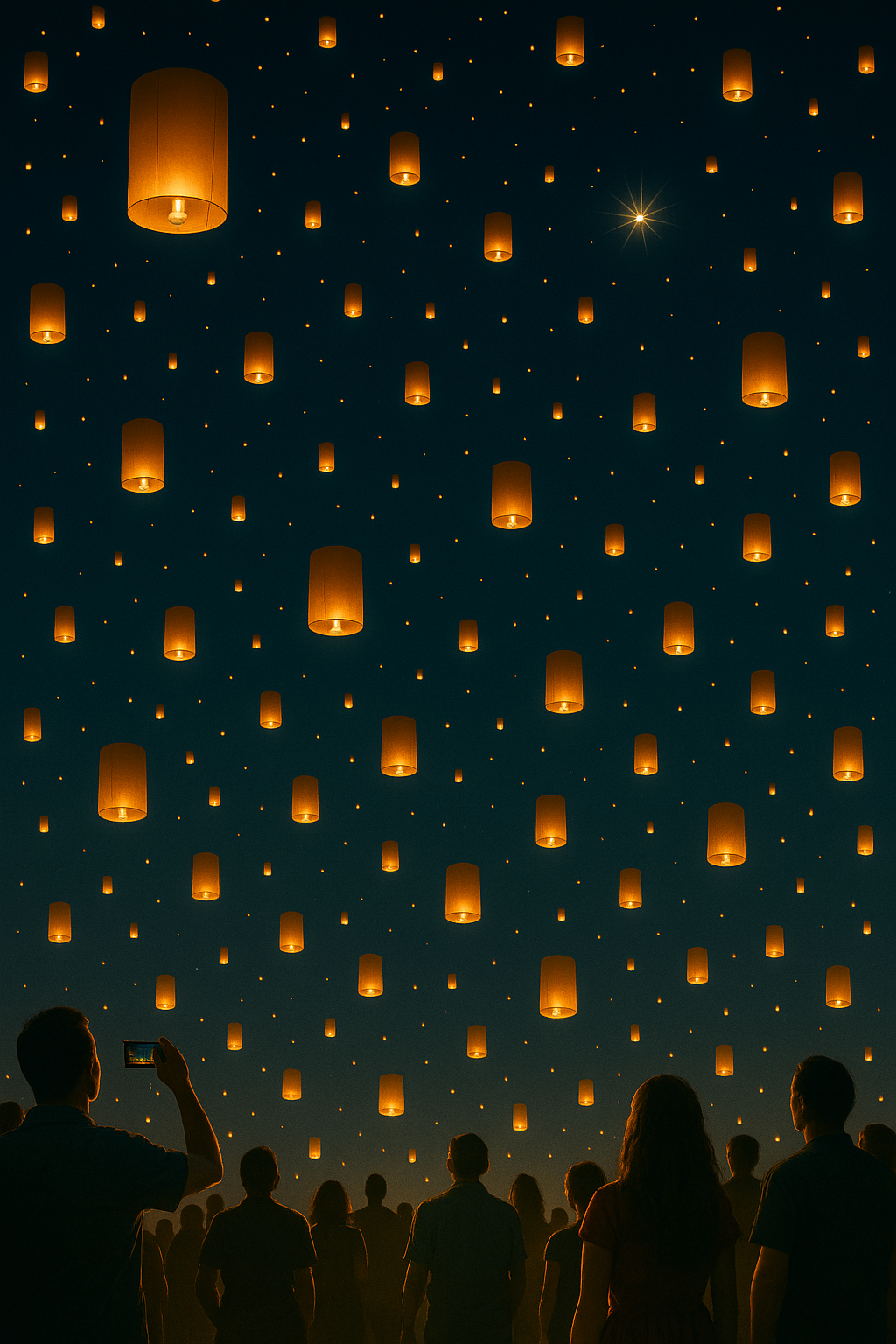 Tu entrada incluye el acceso completo al evento, una linterna voladora biodegradable, una bebida gratuita y una pulsera luminosa. Disfruta de música en vivo, zonas de fotografía y el gran lanzamiento colectivo bajo un cielo lleno de luz. 🌌